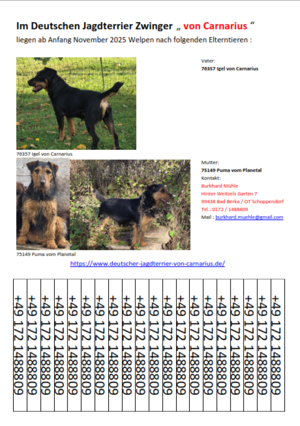 Herzlich willkommen auf meiner Seite im DJT Zwinger"von Carnarius".
